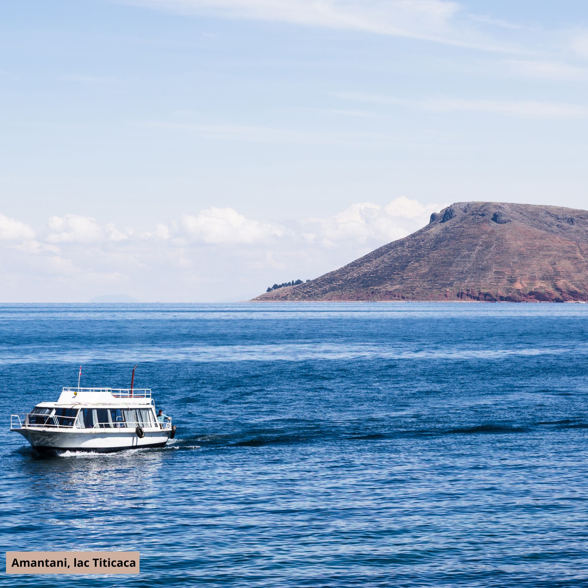 Petit déjeuner à lhôtel. Transfert de lhôtel au port puis départ en bateau sur le lac Titicaca : le lac navigable le plus haut du monde. Premier arrêt sur les iles Uros, les iles flottantes faites en « Totora », un roseau qui pousse sur le bord du lac Titicaca. Ces îles ont été batties au XIIIe siècle par les Uros qui cherchaient à fuir les incas. Visite de ce lieu hors du commun et rencontre avec une famille qui expliquera ces étonnantes constructions ainsi que le mode de vie du peuple Uros. Poursuite de la traversé du lac jusquà lile dAmantani. Rencontre avec la famille daccueil et installation puis observation du crépuscule sur le lac au sommet de lile. Déjeuner, diner et nuit chez lhabitant (confort simple).